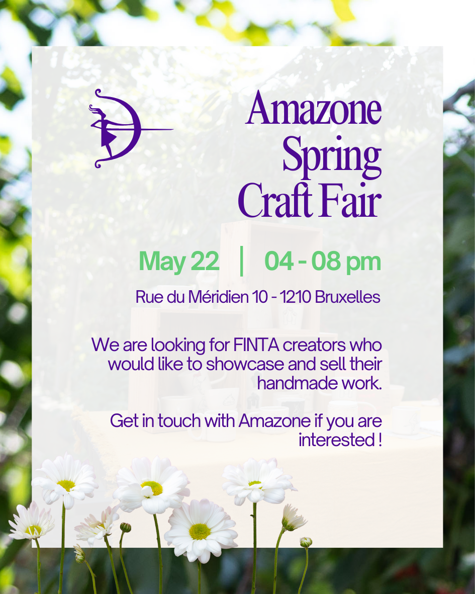 🌿 The feminist market for FINTA creators is getting ready for its spring edition at Amazone on Thursday, May 22! Do you create illustrations, fanzines, stickers, ceramics, jewelry, beauty products, textiles, candles, paintings, etc.? Contact Amazone at t.leclercq@amazone.be with a short description of your work and some photos to give us an idea of what it’s all about.