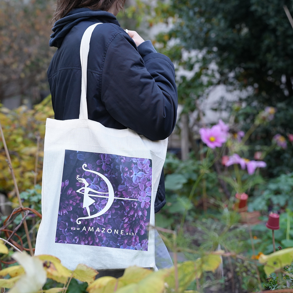 A simple, elegant tote bag that proudly carries Amazone’s colours. Between lilac and the symbol of the archer, it embodies a feminist and collective identity. Carry it with you wherever you go as a reminder that commitment/activism is something we practice in our everyday lives.