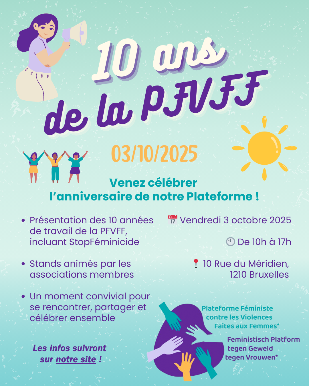 ✨ Cette année, la Plateforme Féministe contre les Violences Faites aux Femmes* (PFVFF) fête ses 10 ans ✨