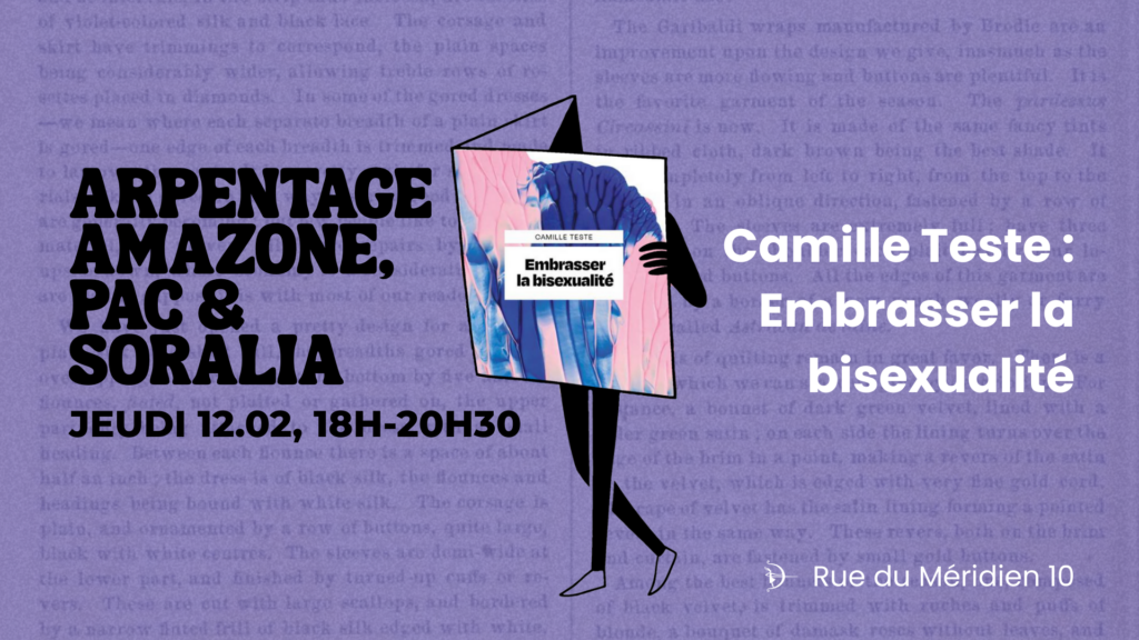 🟢 Amazone, Soralia et Présence et action culturelles (PAC) s’associent pour vous proposer l’arpentage du livre Embrasser la bisexualité de Camille Teste.