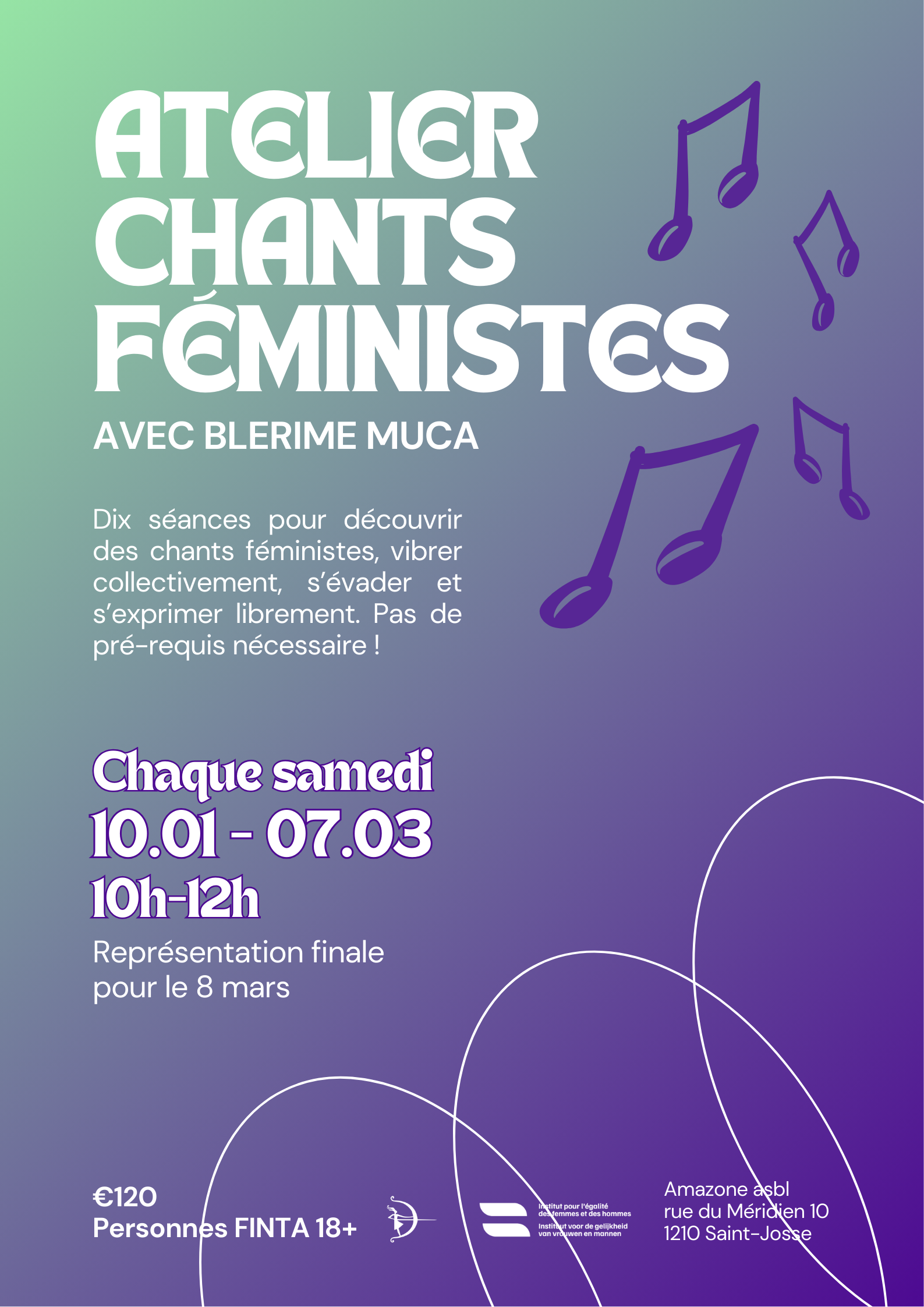 Rejoins l’atelier de Blerime Muca, artiste pop engagée, qui porte haut les voix des femmes et des minorités de genre et les encourage à croire en leur puissance. À travers une musique empreinte de résilience, de résistance et de féminisme, elle ouvre des espaces où chacune peut se sentir légitime, forte et libre.