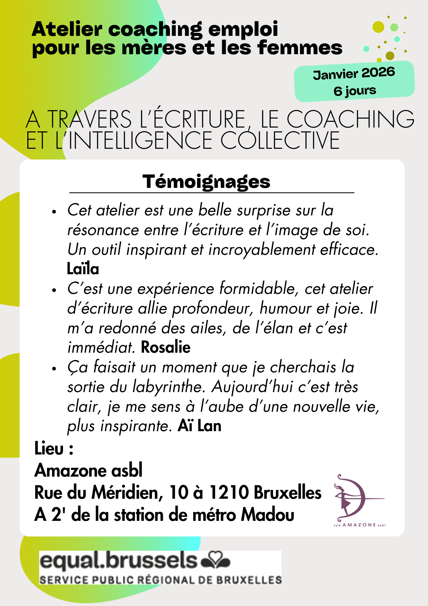 Lieu : Amazone asbl (Madou)