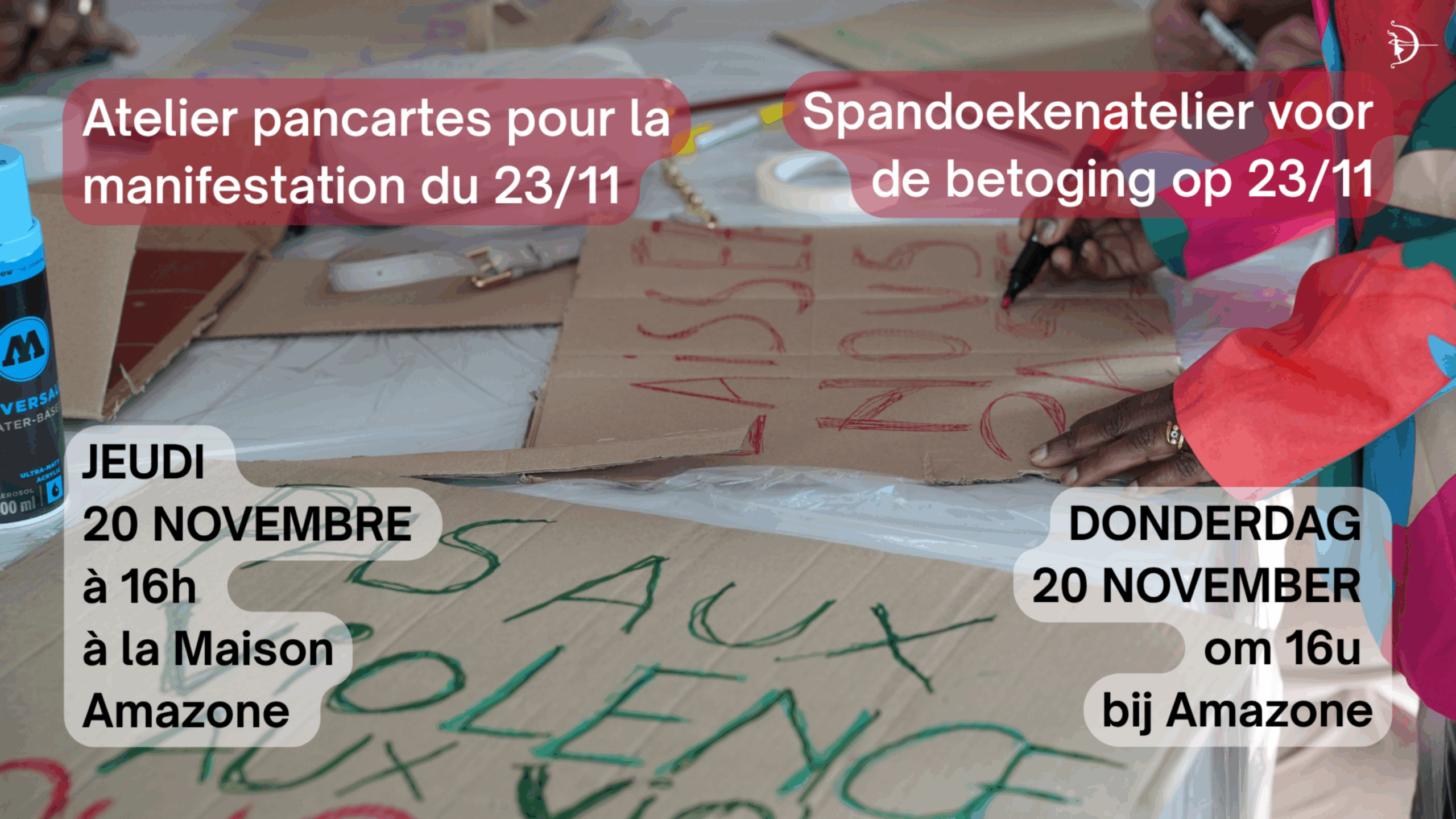 🎨 Ter voorbereiding organiseren we op donderdag 20 november, van 16u tot 18u, een spandoekenatelier in het Amazonehuis.