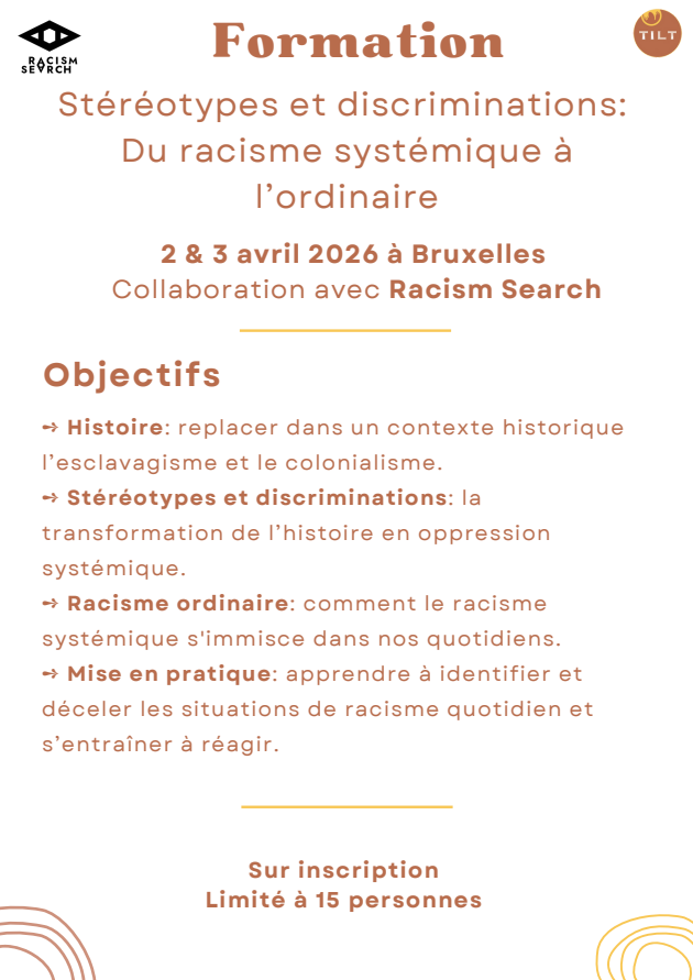📖 Détails et inscriptions : https://www.helloasso.com/associations/tilt-toulouse/evenements/bruxelles-stereotypes-et-discriminations-racisme-avril-2026