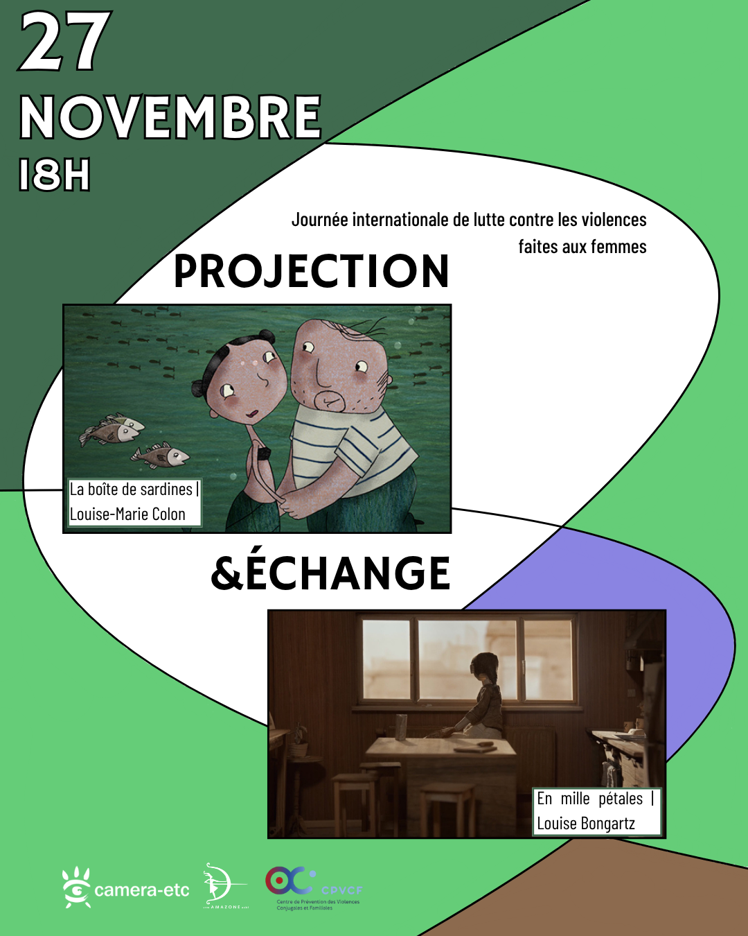 Dans le cadre de la Journée internationale de lutte contre les violences faites aux femmes, Amazone, en collaboration avec Camera etc et le CPVCF, vous invite à une soirée cinéma et échange. Deux courts-métrages seront projetés, suivis d’un échange autour des violences faites aux femmes et du contrôle coercitif :