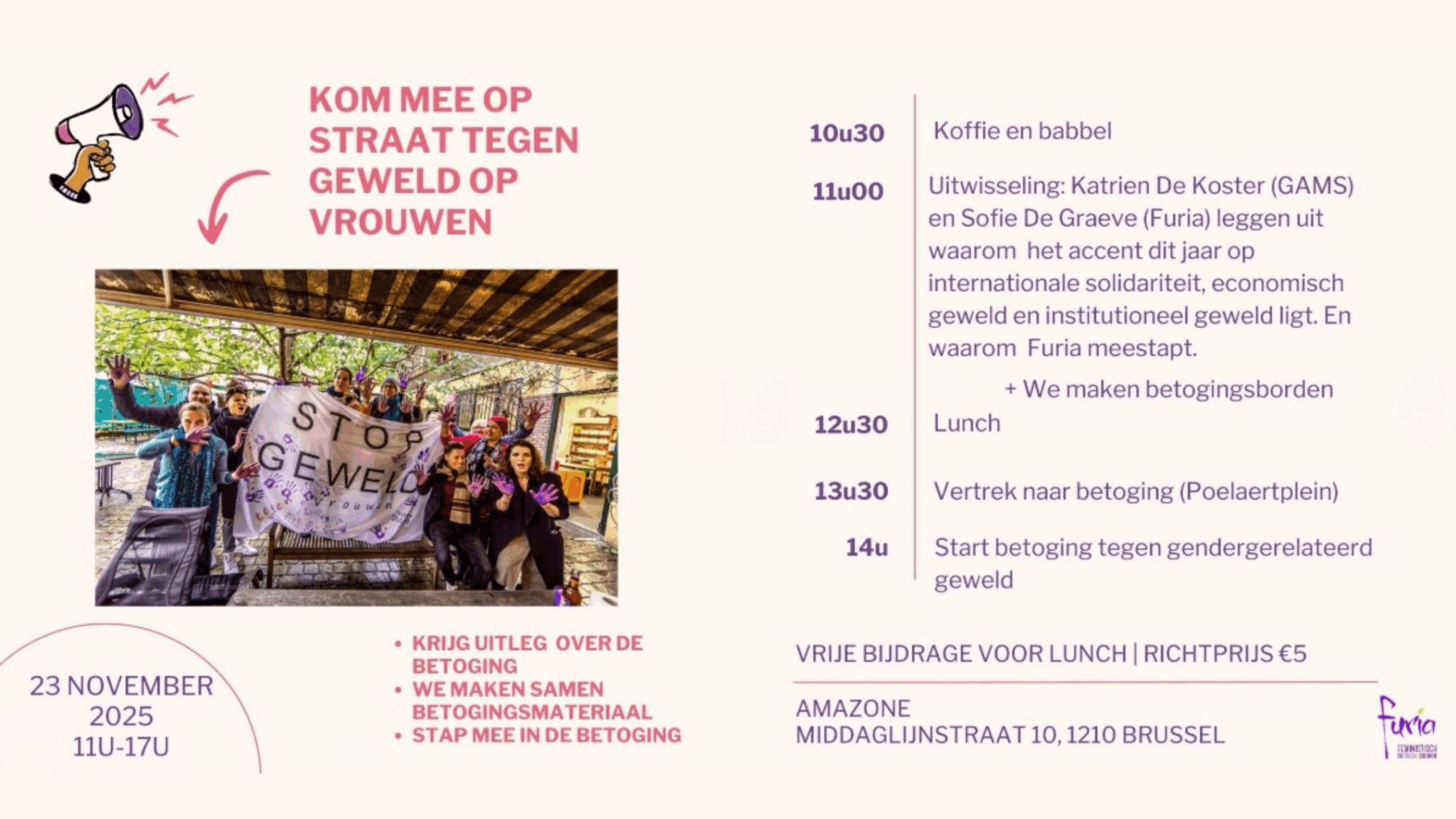 Furia stapt op zondag 23 november mee met de betoging van Mirabal tegen gendergerelateerd geweld.
