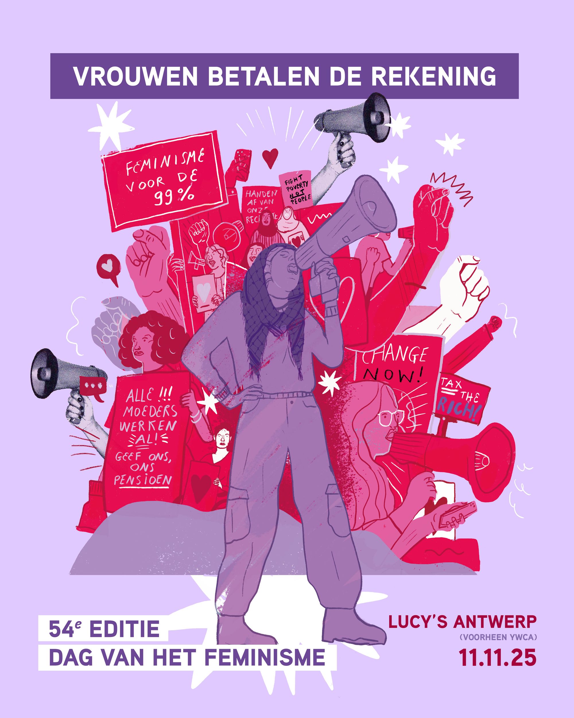 Dit jaar staat de Dag van het feminisme in het teken van socio-economische ongelijkheid. Beleidskeuzes raken vrouwen in BelgiĂ« en wereldwijd extra hard. Onbetaald werk – zorg, huishouden, opvoeding – wordt nauwelijks erkend. Wanneer vrouwen het thuis doen, is het gratis en worden ze er ook nog eens voor afgestraft in hun pensioen; wanneer ze het betaald doen, is het vaak voor een laag loon en in onzekere omstandigheden. Dit werk rust bovendien onevenredig zwaar op de schouders van vrouwen in kwetsbare posities: kortgeschoolde vrouwen, vrouwen van kleur, vrouwen zonder wettig verblijf…